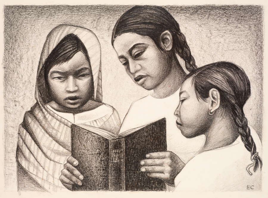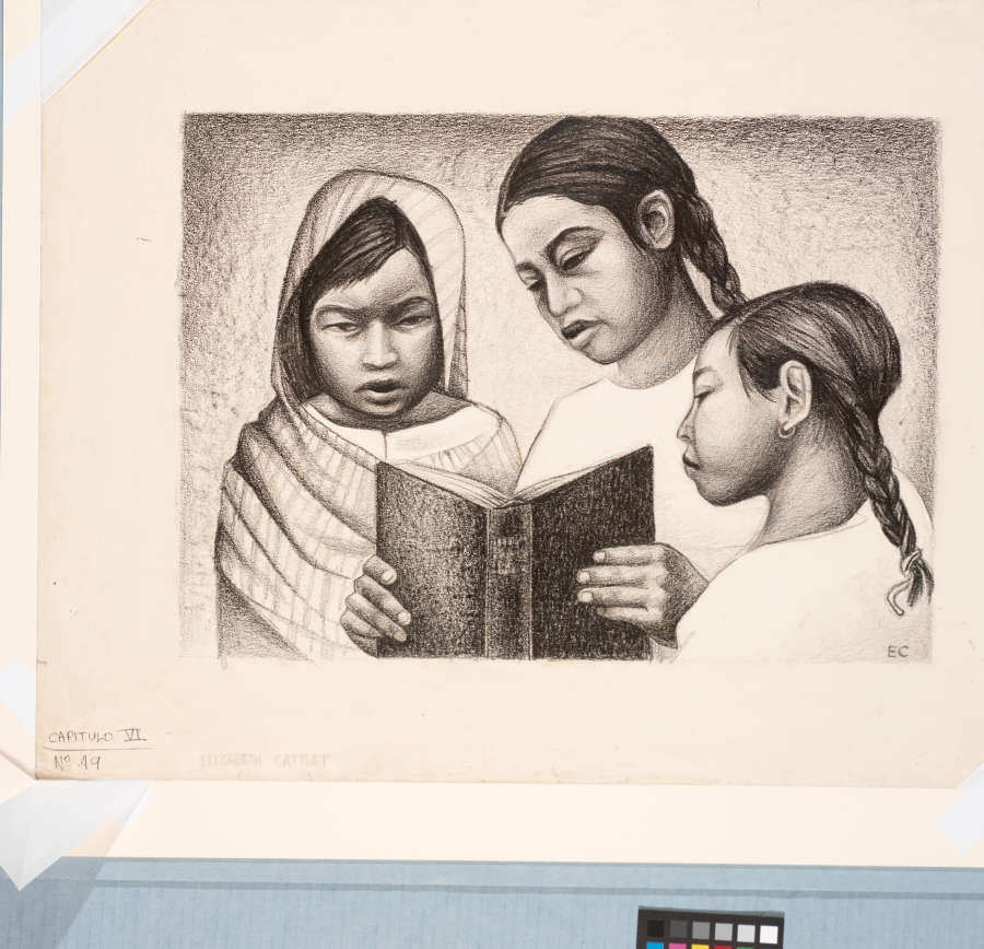 signed lower left "Elizabeth Catlett"; initialed lower right "EC"; inscribed lower left margin "capitulo VI No. 49"