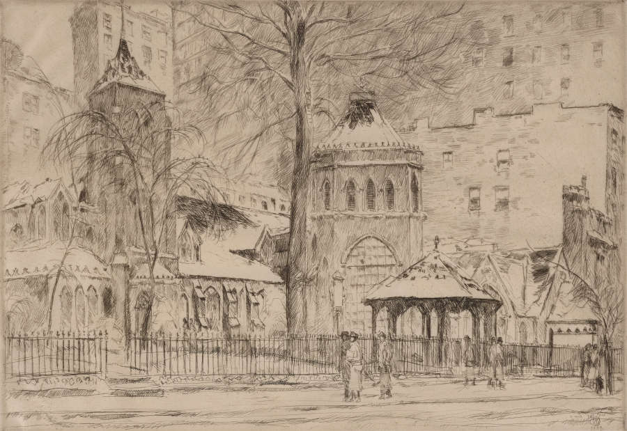 Original--Recto: in pencil under platemark on right CH (in a circle) imp.; along bottom of sheet (not in artist's hand) #220 Little Church around the Corner 24In Plate--In LR corner:Jan 31st/CH (in a circle)/1923