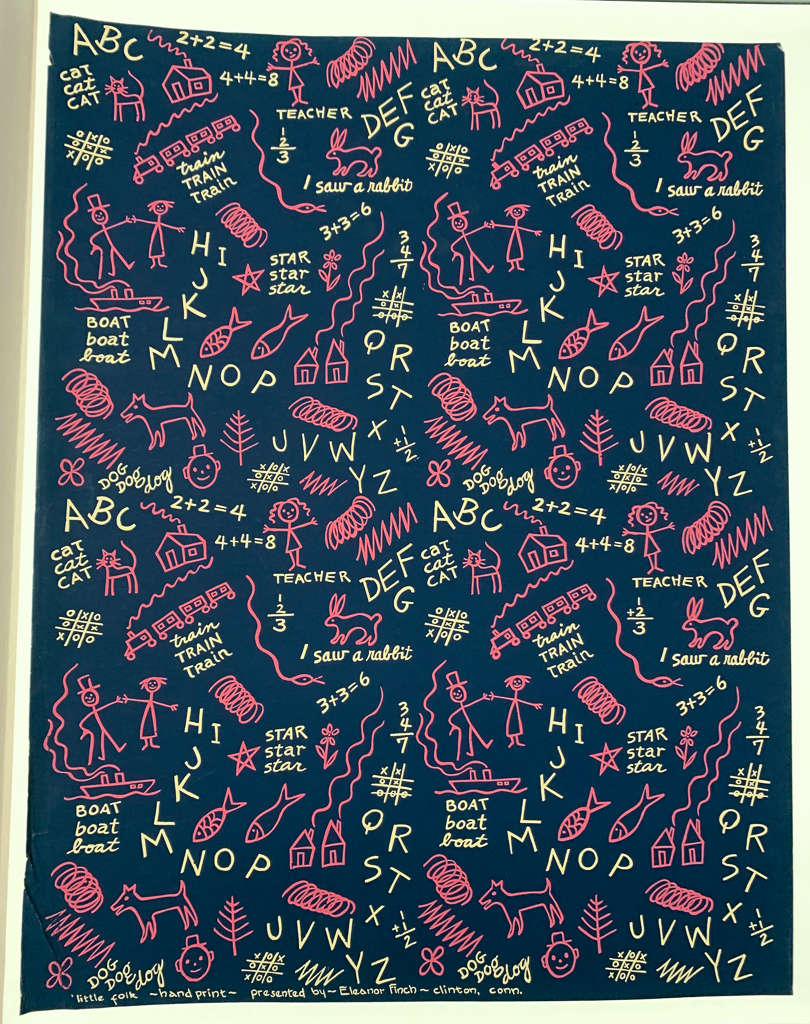 Marks: Printed on lower edge:'little folk-hand print - presented by - Eleanor Finch - clinton conn.