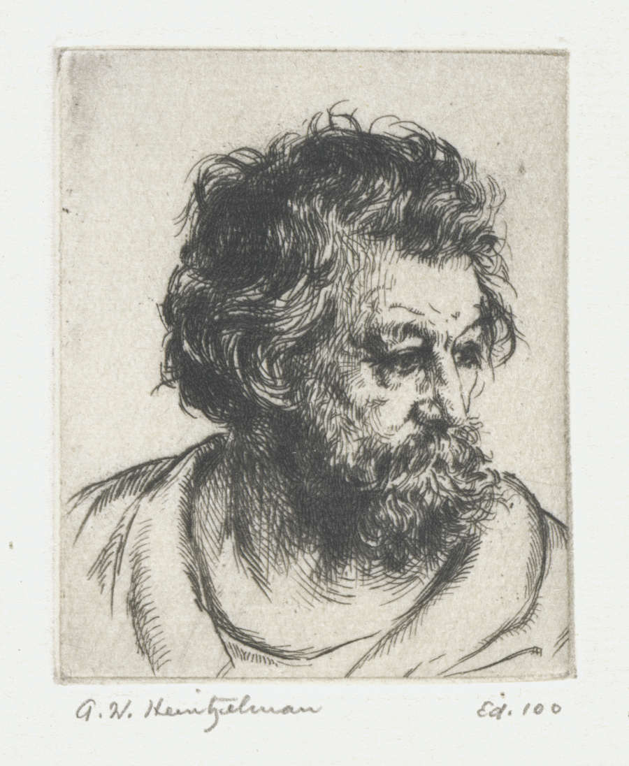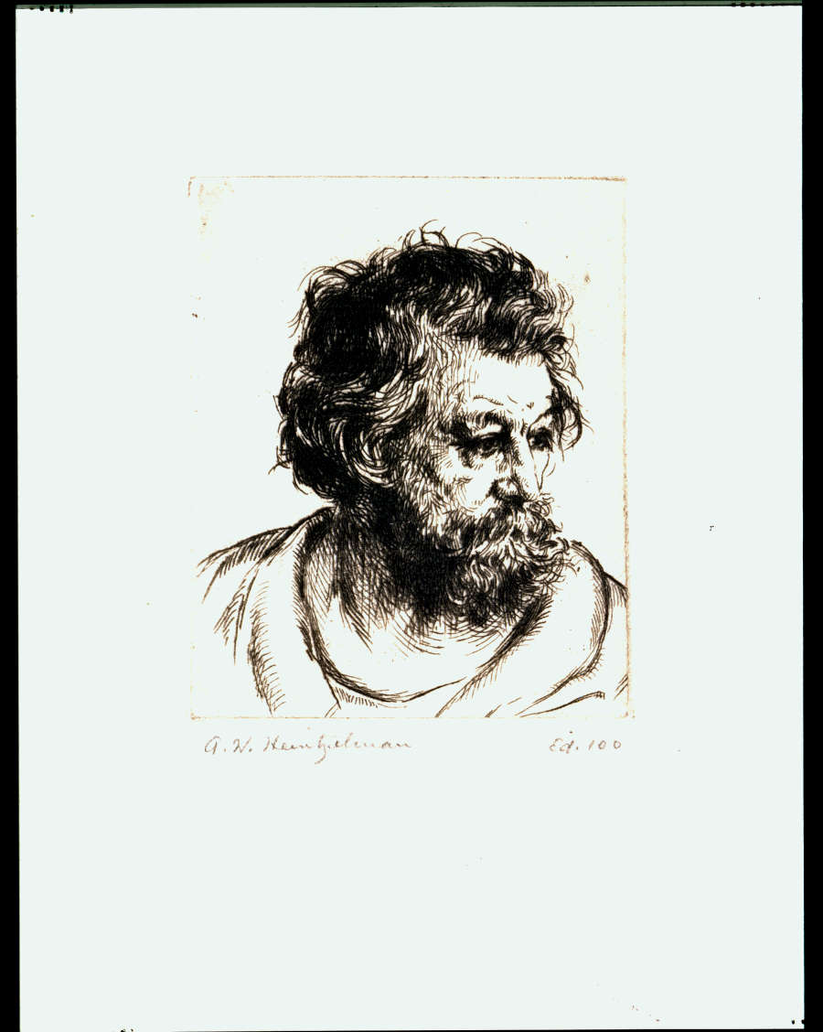 Original--Recto:signed in pencil below platemark on left:A. W. Heintzelman; on right:Ed. 100; in bottom center of sheet:Little Head No. 5 ; in LR corner:S.40040
