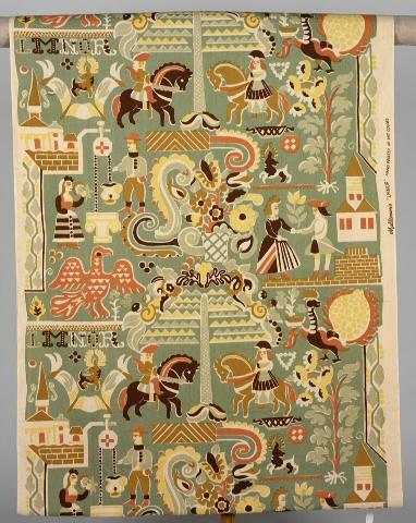 "Mallinson's LMNOR Handprinted in VAT colors" in selvage in brown
