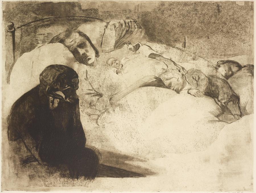 etching, drypoint, aquatint, sandpaper and softground pressed with Ziegler transfer paper