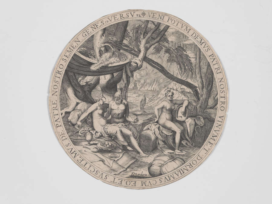 Signed and dated, on image, LC; Printed, on image, border: De Patre Nostro Semen Genes 19 Versv 32 Veni Potvm Demvs Patri Nostro Vinvmet Dormiamvs Cvm Eo, Et Svscite Mvs