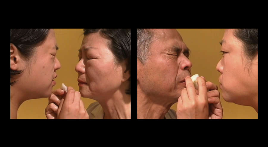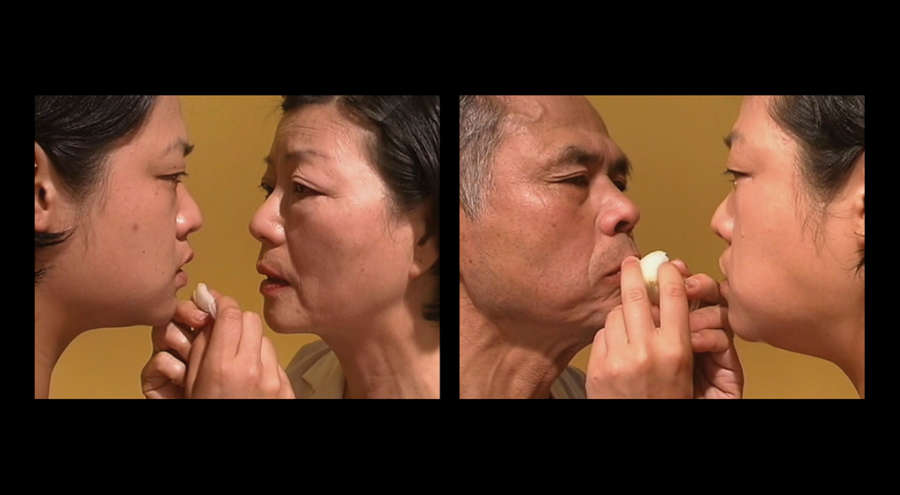 Label on mom case: IN LOVE 2001 1 of 2 (Mom-left) / mom DVD signed by artist / label: Patty Chang In Love (Mom) / label on dad case: IN LOVE 2001 2 of 2 (Dad-right) / dad DVD signed by artist / label: Patty Chang In Love (Dad)