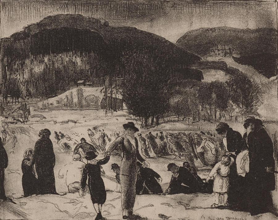 Original--in pencil in LR on verso:24.389In Plate--Within illustration of upper scene:GEO BELLOWS; under illustration:LOVE OF WINTERGeo Bellows (signed).Below illustration at bottom of beige sheet:CHRISTMAS1917/Miss Jean Bellows - Miss Anne Bellows/Emma Bellows and George Bellows/Wish you a merry CHRISTMAS/and a HAPPY·NEW·YEAR