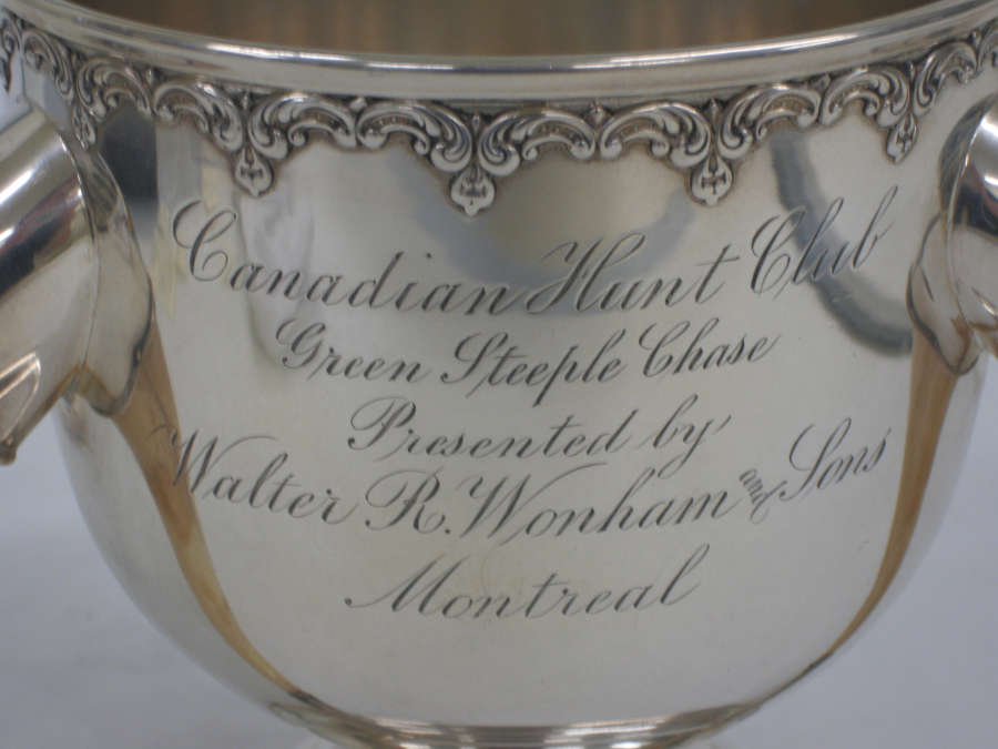 Inscribed on one side: "Canadian Hunt Club/Green Steeple Chase/Presented by/Walter R. Wonham & Sons/Montreal.”