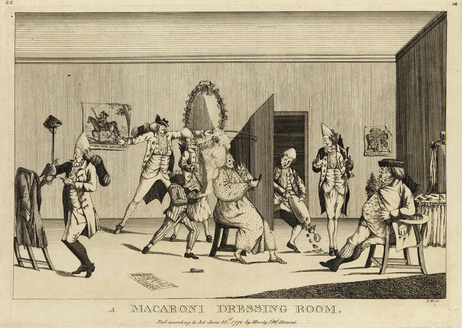 Lettered below image: "A Macaroni Dressing Room" / "Pub. according to Act June 26th 1772 by MDarly (39) Strand" Credit / Object Number