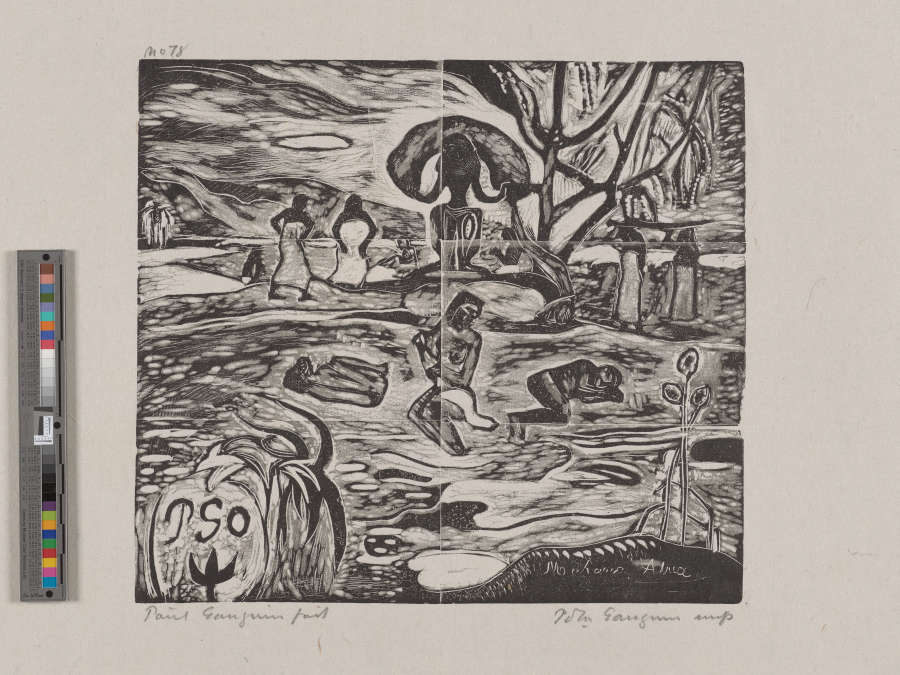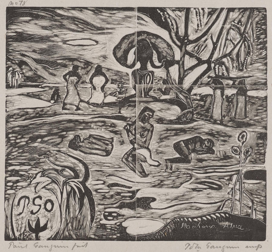 Lettered with artist's monogram LL: "PGO". Lettered LR: "Mahana Atua". Inscribed UL: "no. 78."; LL: "Paul Gauguin fait"; LR: "Pola Gauguin imp"