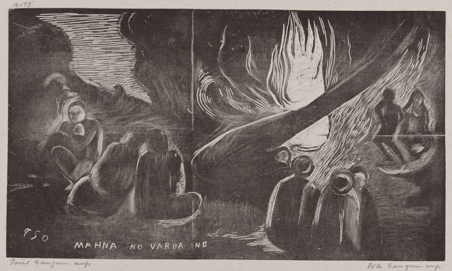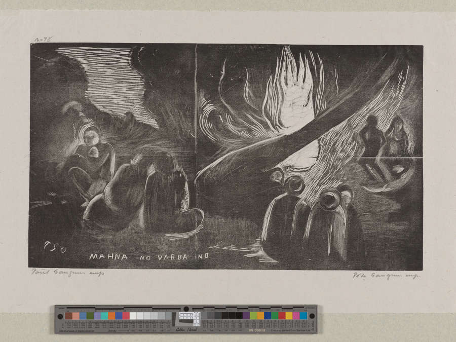 Lettered with artist's monogram LL: "PGO". Lettered LL: "MAHNA NO VARUA INO". Inscribed UL: "No 78"; LL: "Paul Gauguin fait"; LR: "Pola Gauguin imp.".