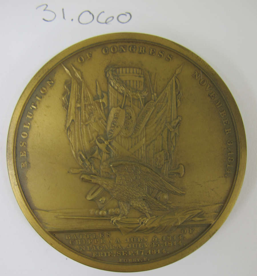 Obv: Major General Jacob Brown.Rev: Niagara, Erie, Chippewa; Resolution of Congress November 3, 1814; Battles of Chippewa.July 5, 1814. Niagara July 25, 1814. Erie Sep. 7, 1814.