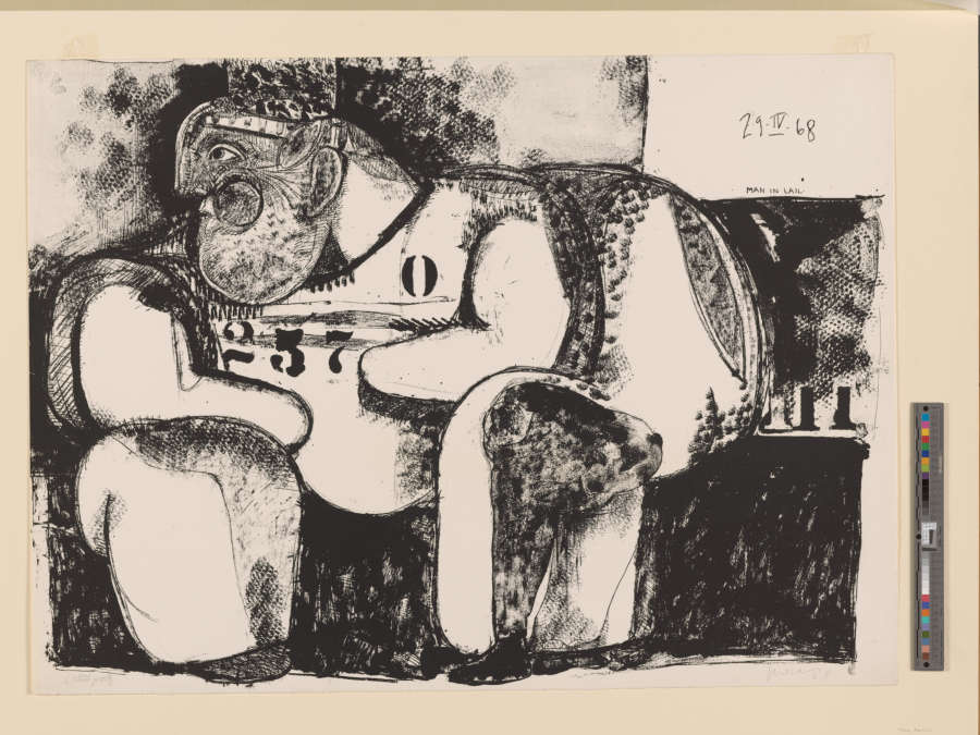 Original--Recto:inscribed in pencil, LL:Artist proof; signed and dated, LR:Cueva 68Verso:inscribed in pencil, UR and LR:243 P/2; in LL:1581In Plate--Dated and titled, UR:29 - IV - 68/MAN IN [J reversed]AIL
