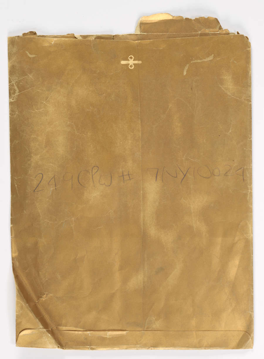 Manila envelope; Collection of Correspondence from James Lee Byars to Alan Sondheim, ca.1971-1972