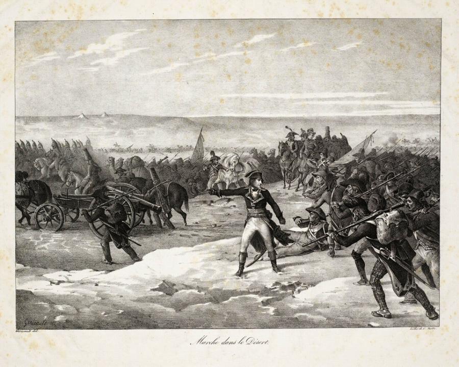 Lettered with artist's signature in plate: "Gèricault". Lettered LL: "Gèricault del:"; LC: "Marche dans le Dèsert."; LR: "Litho: de C. Motte."