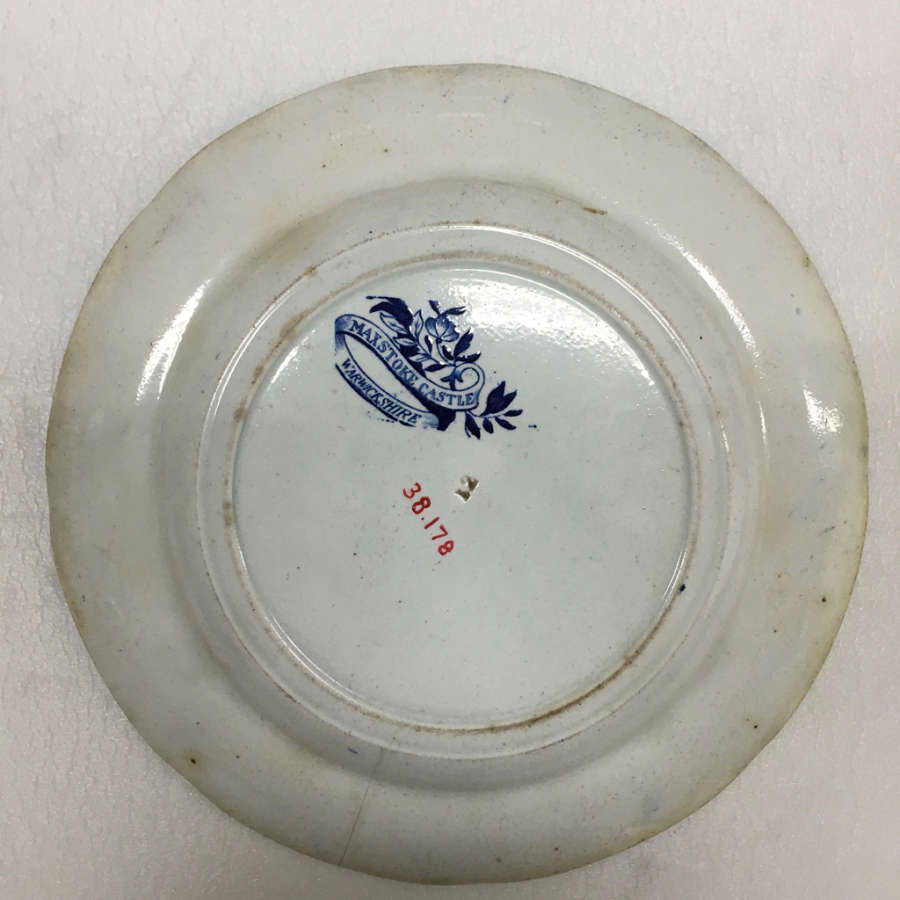 Marks: On back, title on ribbon with flower spray.12 (underlined) impressed on back.