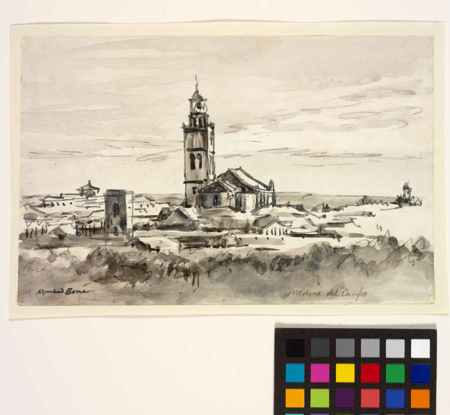 Signed in ink in LL:Muirhead Bone; in pencil in LR:Medina del Campo; Printed on Agnew mat window:116.Sir Muirhead Bone-Medina del Campo, Spain