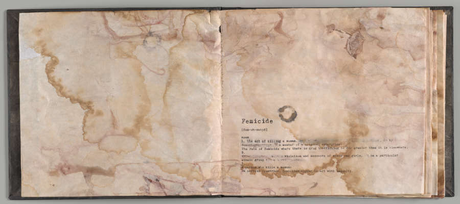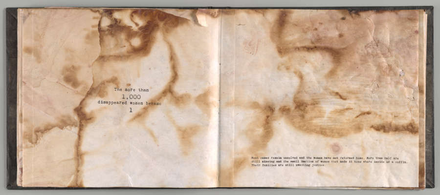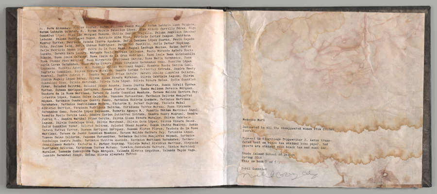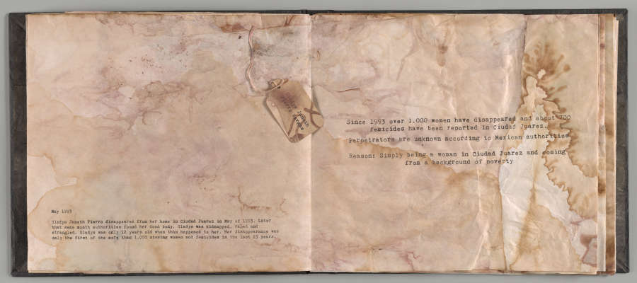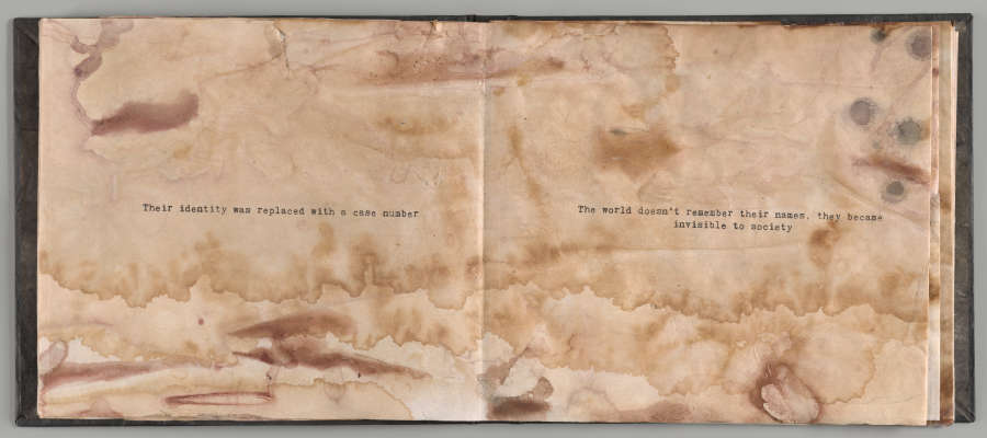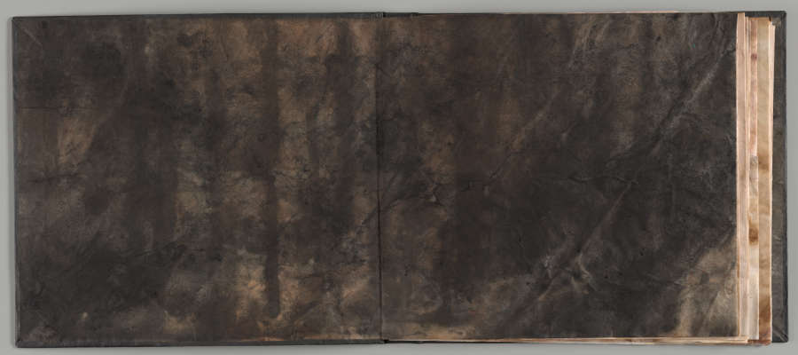 Artist's book with watercolor, tea staining, and Xerox transferred text on kozo paper; bound in mulberry paper with sumi ink, hair, and title Xerox transferred on the cover