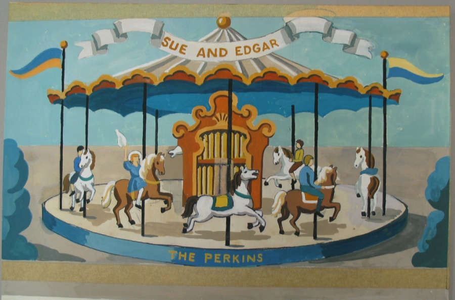 merry-go-round with banner reading "Sue and Edgar Perkins"
