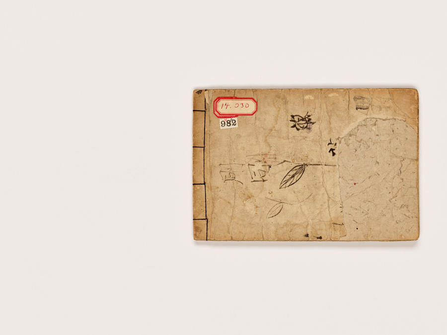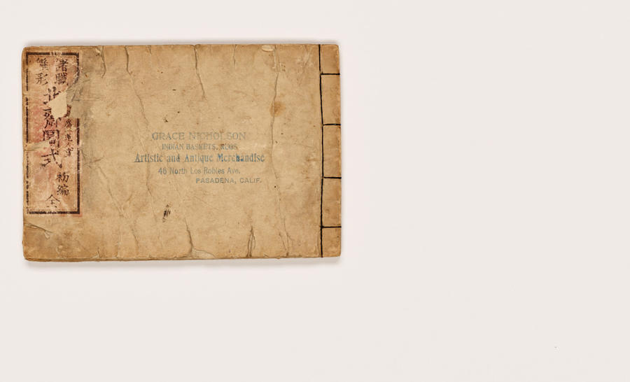 Inscription on front cover, center of page in blue ink: Grace Nicholson/Indian Baskets, Rugs/Artistic and Antique Merchandise/ 46 North Los Robles Ave./Pasadena, Calif.; inscribed number along inside