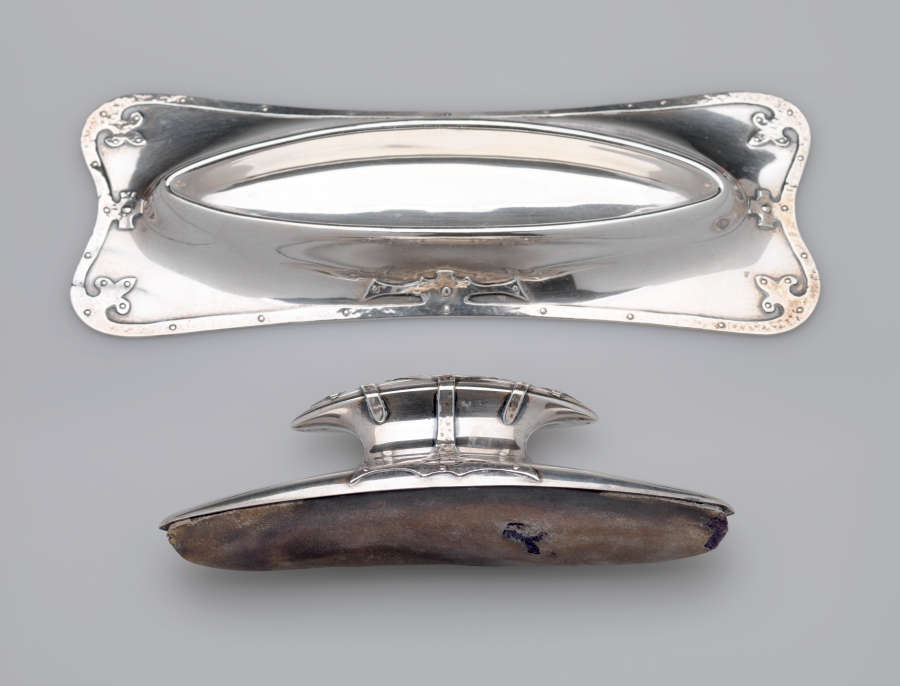 both buffer and buffer tray marked with Gorham makers marks/STERLING/date stamp of a know for 1910