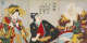 Nakamura Shikan as Hige no Ikyu, Ichikawa Danjuro IX as Hanakawado Sukeroku and Nakamura Fukusuke as Miuraya no Agemaki inthe play Edo zakura (Edo cherry blossoms)