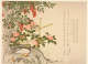 poems by Kyo-ogi ya, Kotsuru Take, likely geisha; the right poem concerns frost, the left the winter peony both appropriate to the winter image; the inscription (unread) may explain the occasion for which the print was made but is unclearSignature: sealed To and Kei