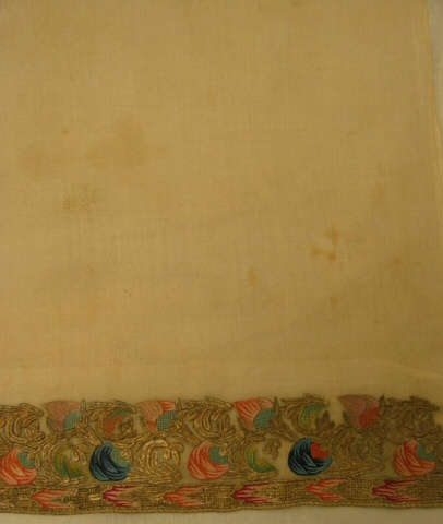 Cotton plain weave with silk- and metallic-yarn embroidery
