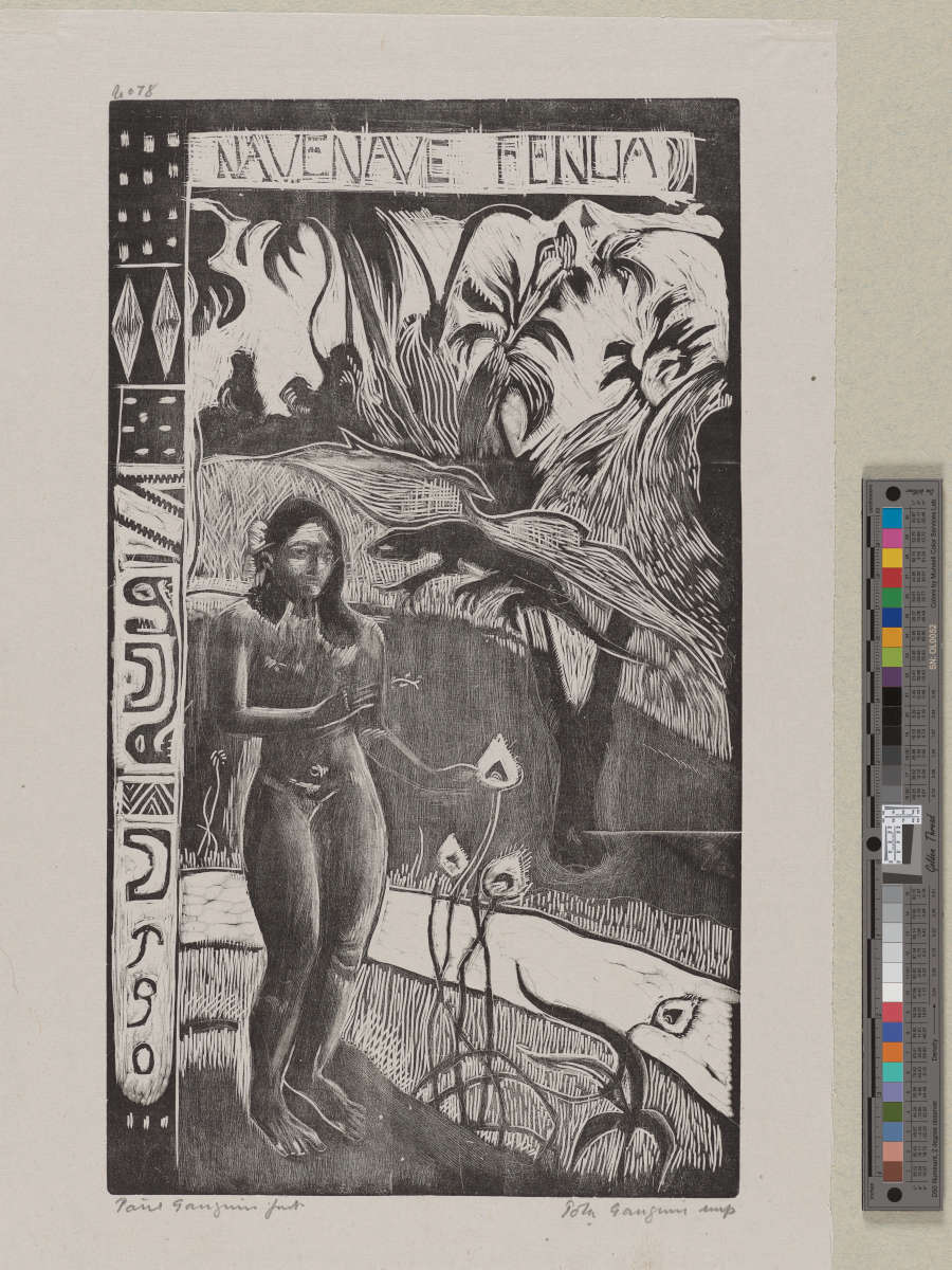 Lettered across top: "NAVENAVE FENUA". Inscribed UL: "no. 78."; LL: "Paul Gauguin fait"; LR: "Pola Gauguin imp"
