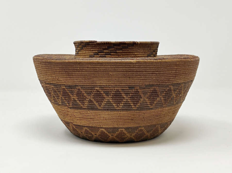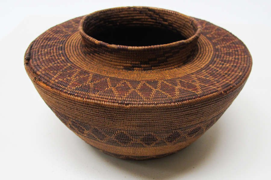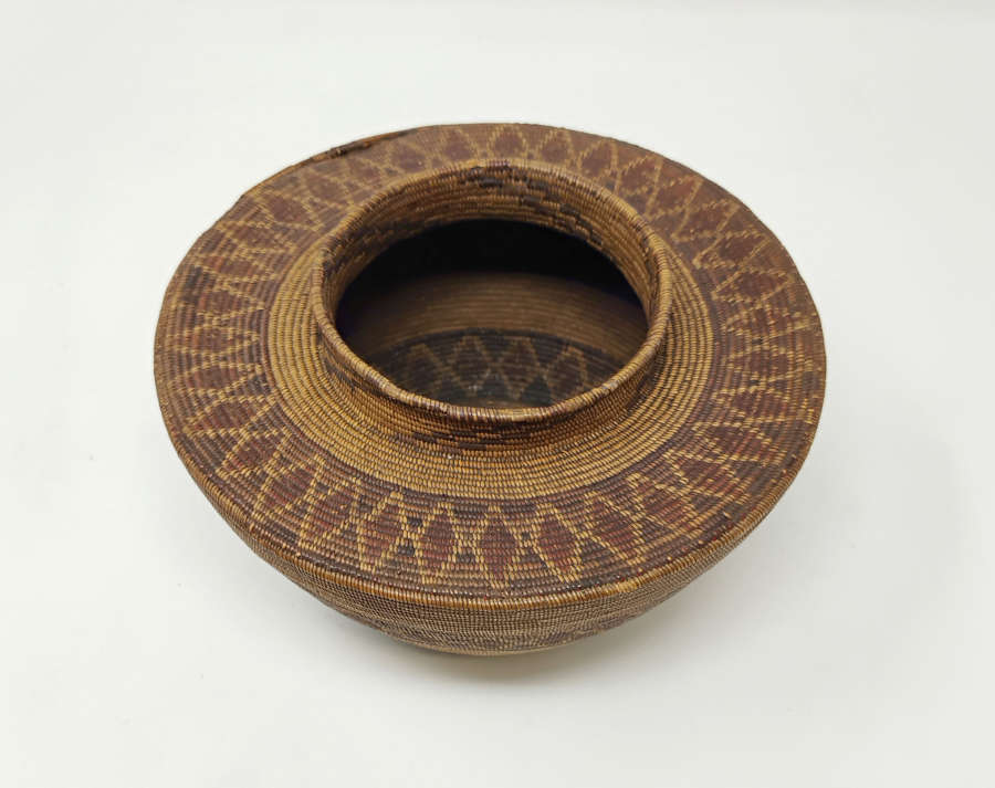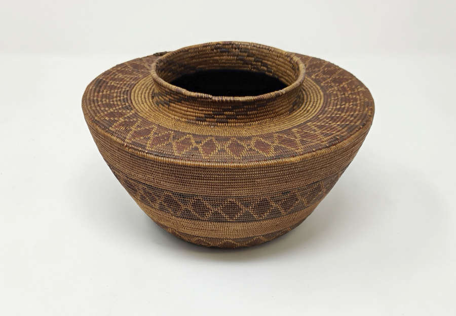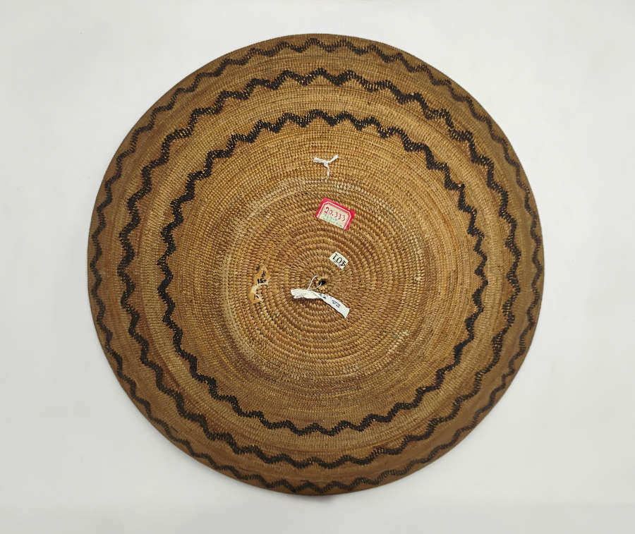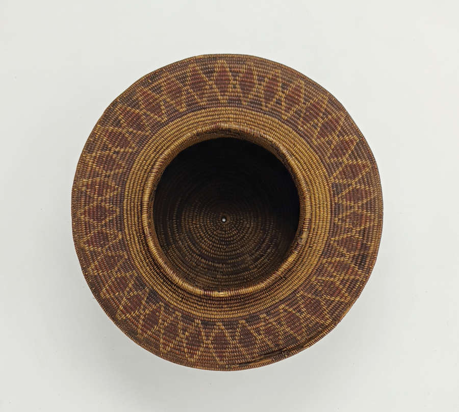 Deer grass (foundation), sedge root, joshua-tree root, dyed bracken fern root; bundle coiled