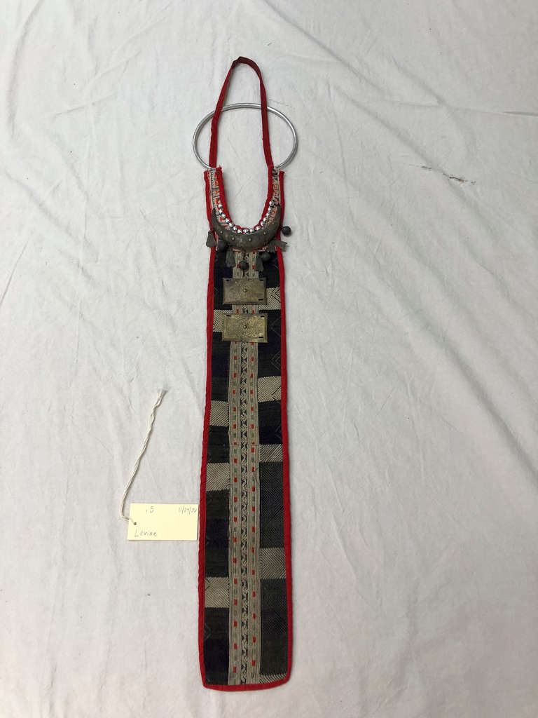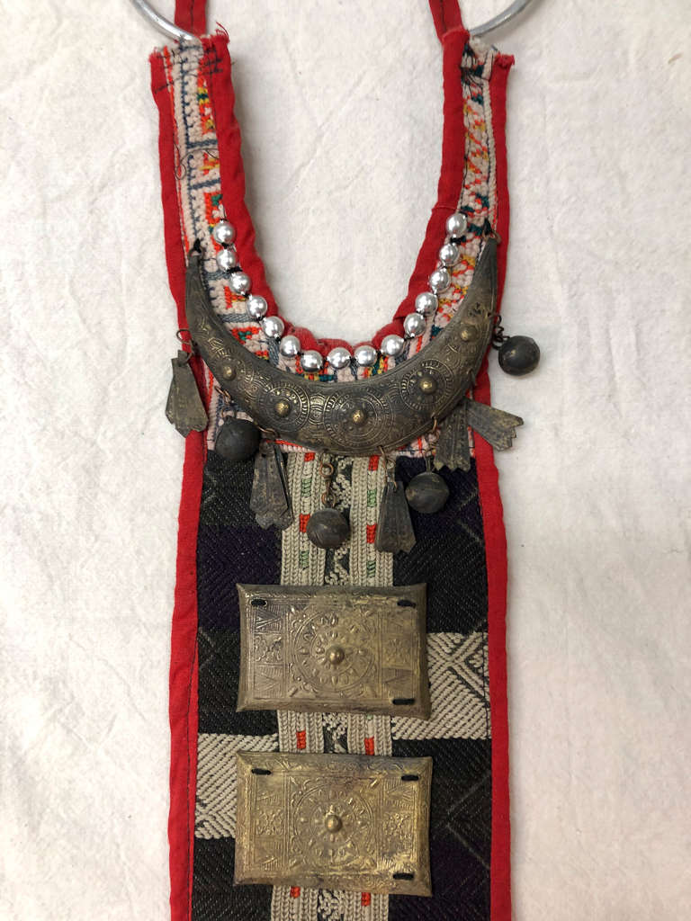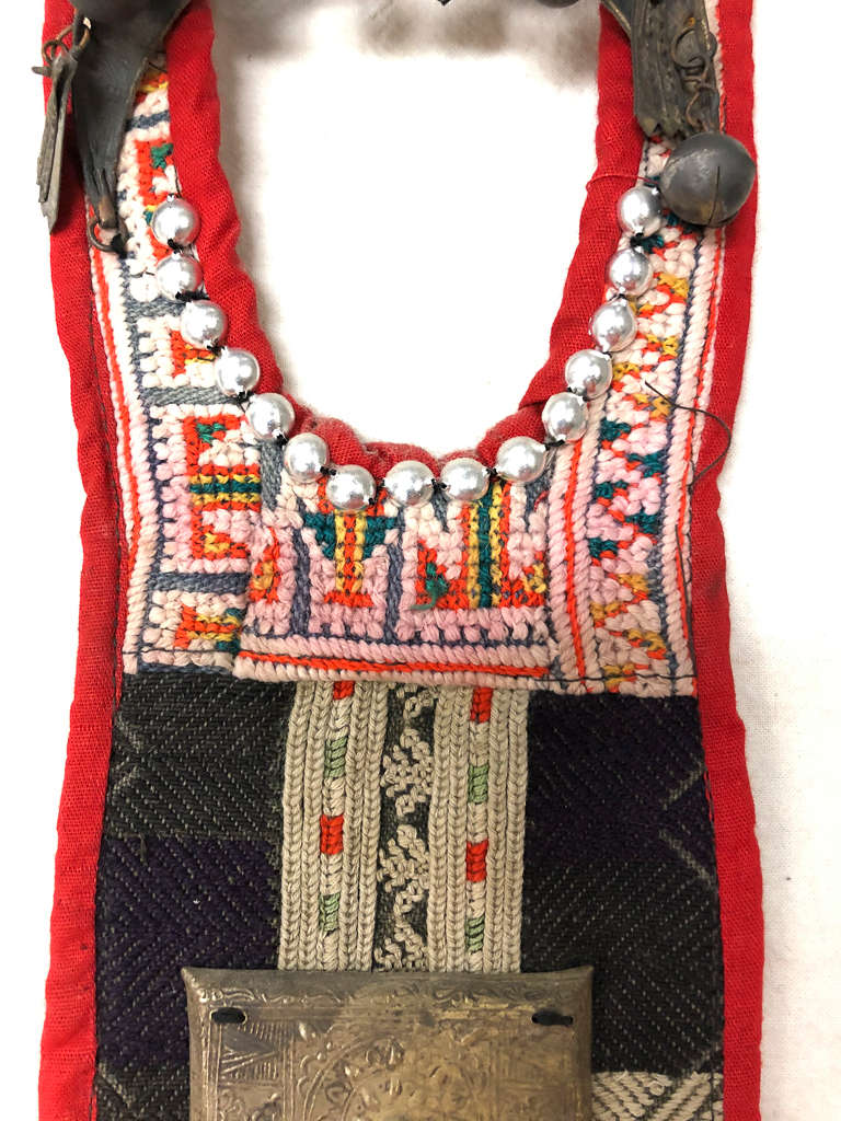 Compound weave cotton with applique, embroidery, applied metal decorations