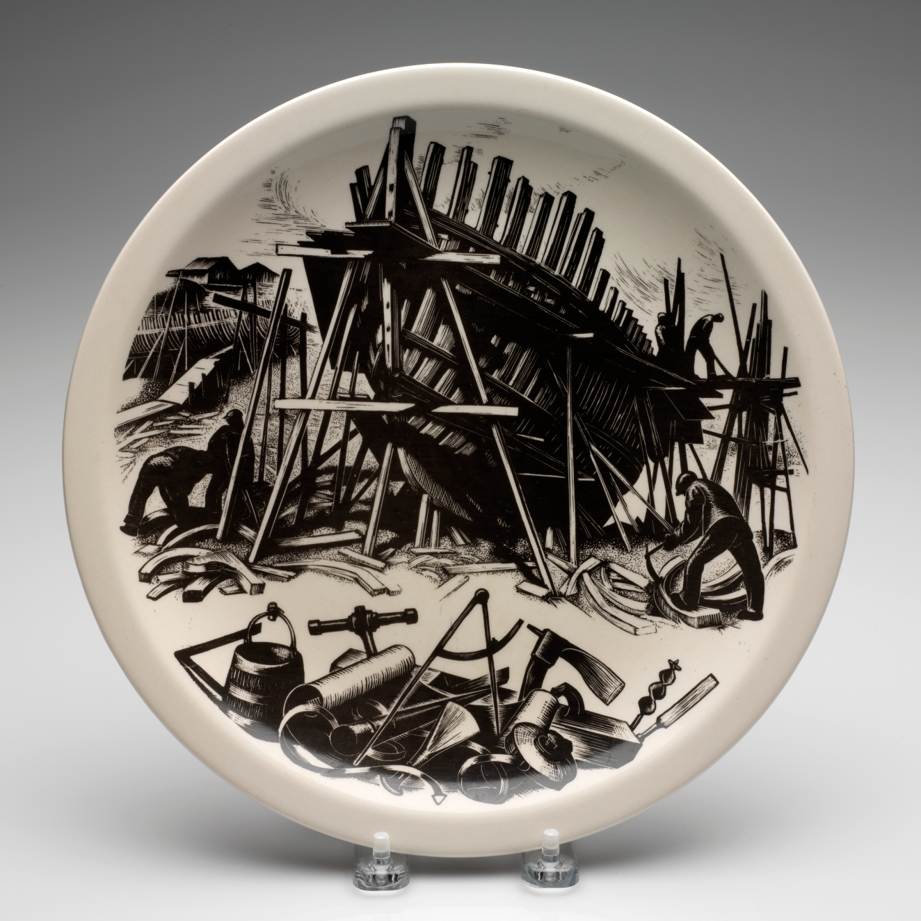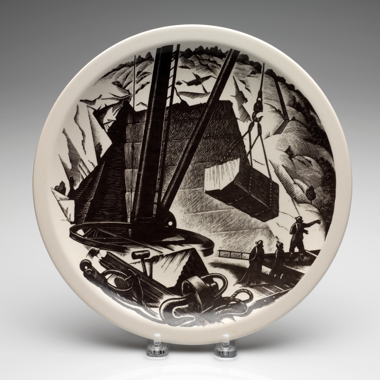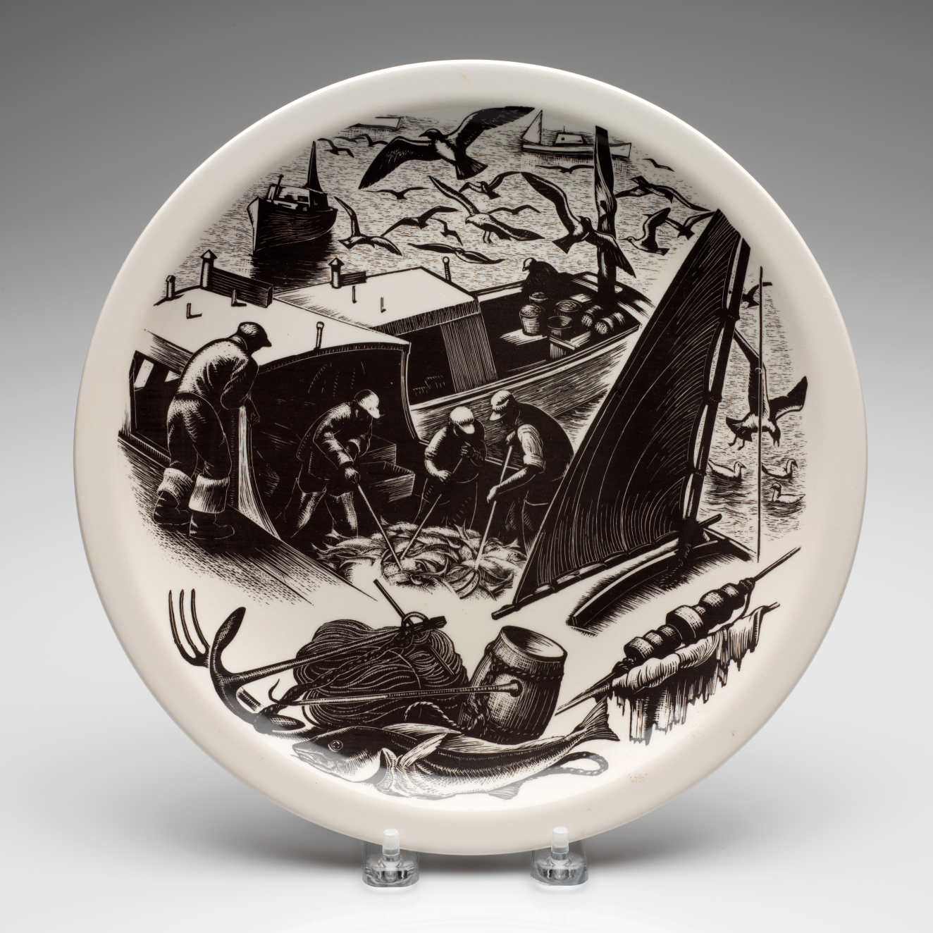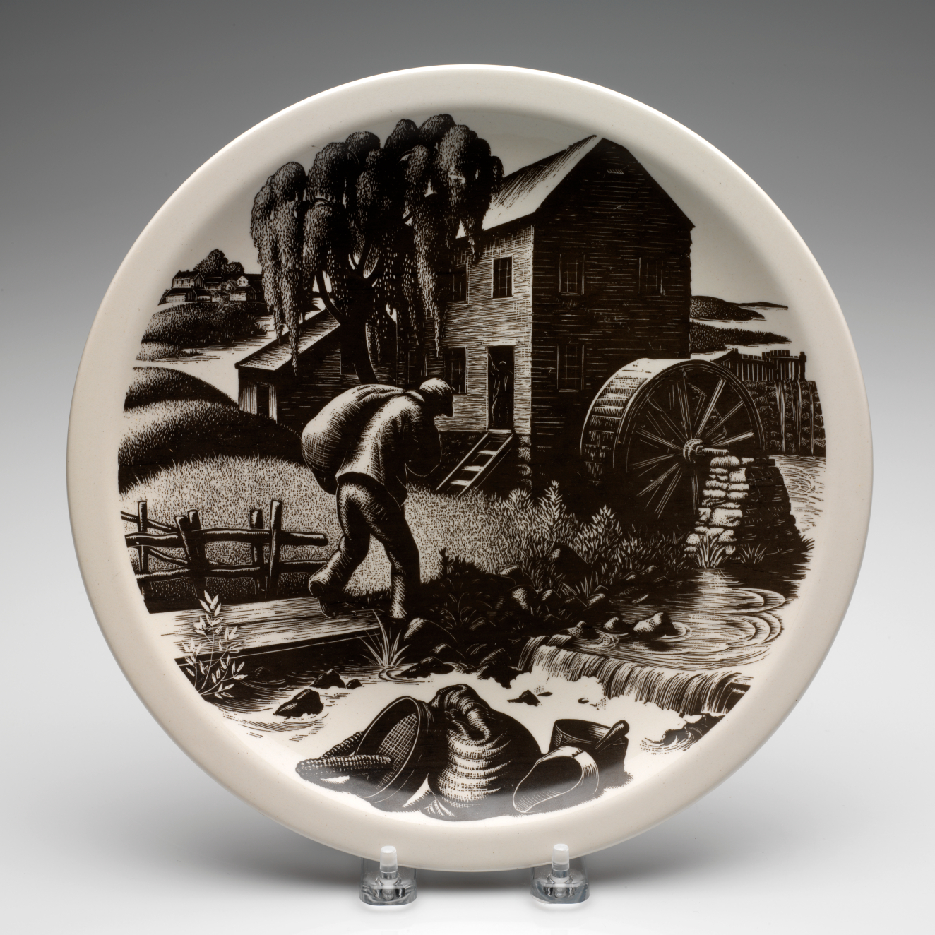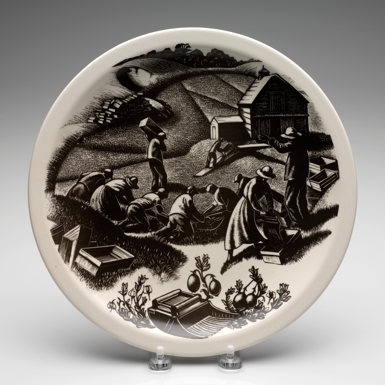 Earthenware, "Queen's ware"; yellow-tinted glaze, black transfer-print