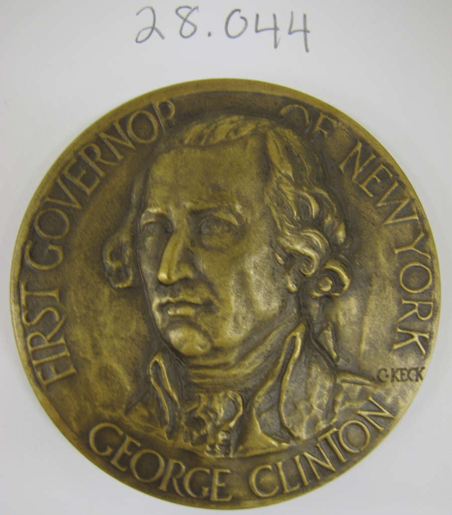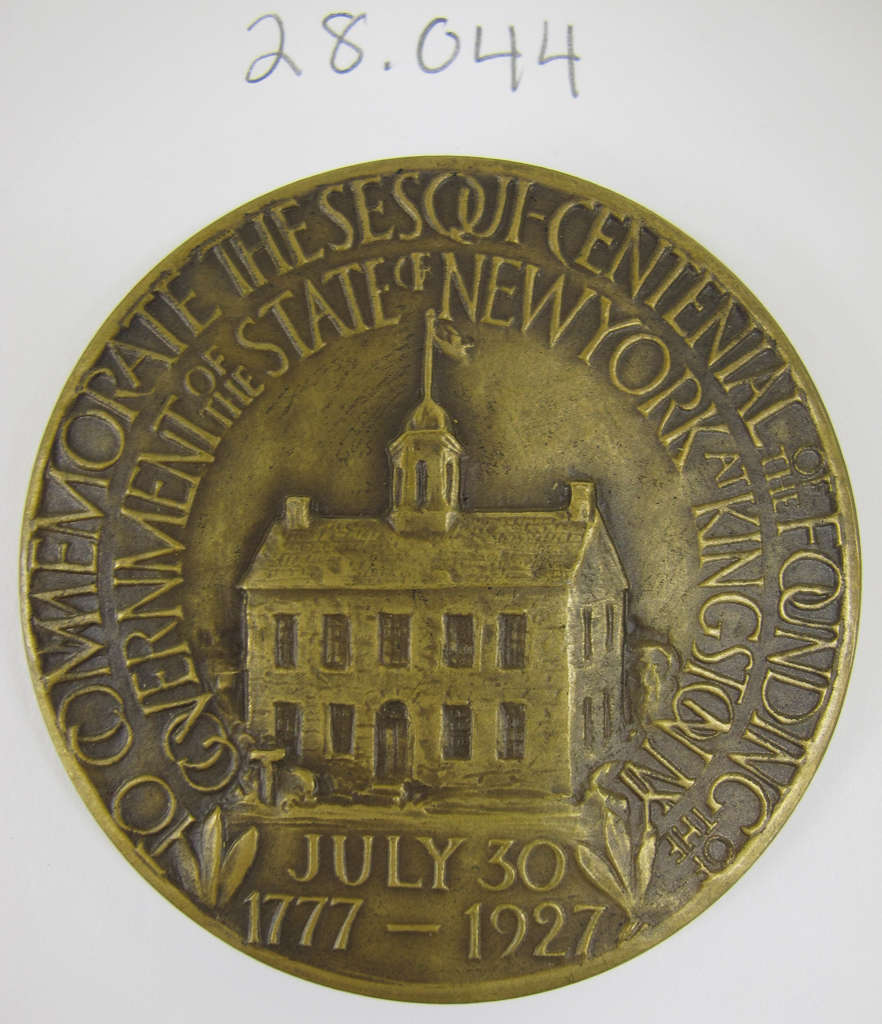 Obv: GEORGE CLINTON FIRST GOVERNOR OF NEW YORK.Rev: TO COMMEMORATE THE SESQUI-CENTENNIAL OF THE FOUNDING OF THE GOVERNMENT OF THE STATE OF NEW YORK AT KINGSTON NY JULY 30 1777-1927.