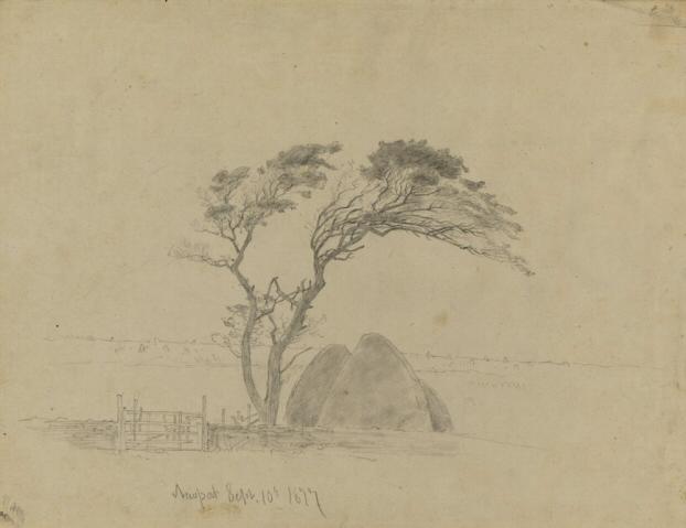 Original--LC:Newport Sept. 10th, 1877; on verso, LR:11x14 1/2";UC:H/6 close up On Recto, UR and UL corners, various scribbles.