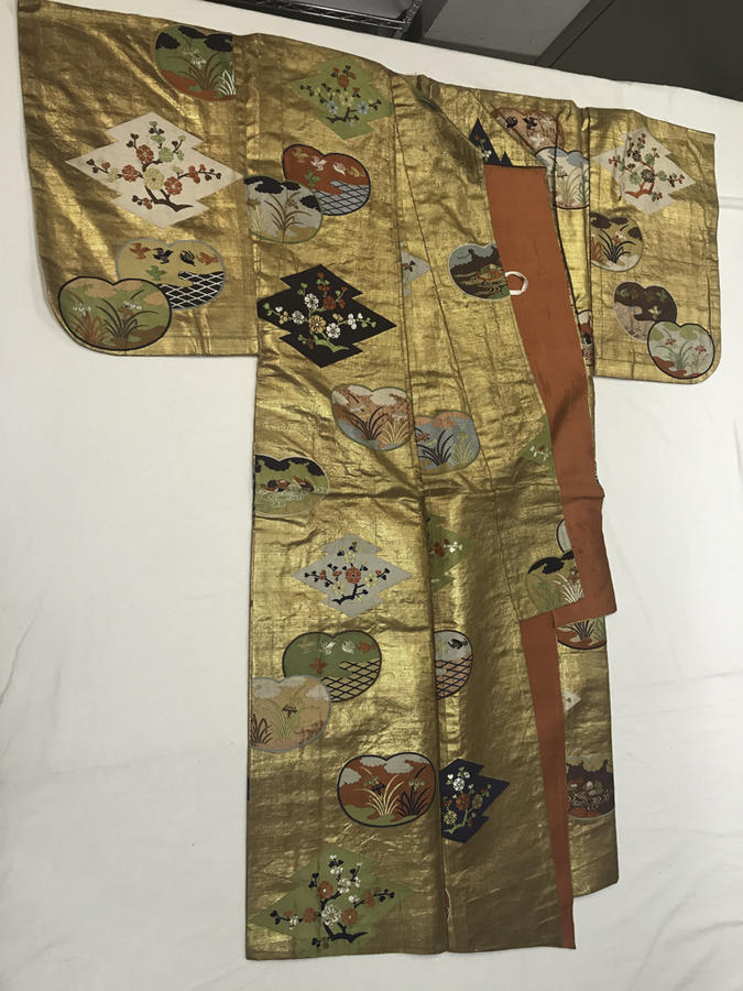 The images on this website can enable discovery and collaboration and support new scholarship, and we encourage their use. This object is in Copyright. This object is Nō theater costume (karaori) with the accession number of 35.460. To request new photography, please send an email to imagerequest@risd.edu and include your name and the object's accession number.