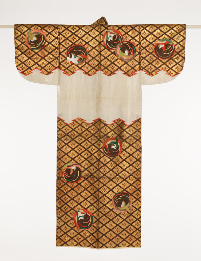 Plain-weave silk with gold leaf, hand-painting, and embroidery