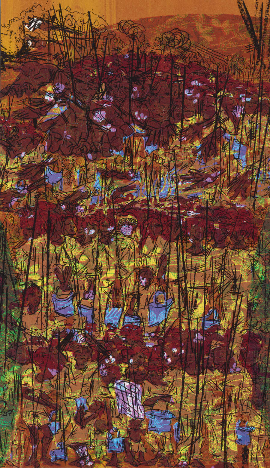 Edition number inscribed in graphite in LL: 3/11. Title inscribed in graphite in LC: “Nomkhubulwane Fled.” Signature inscribed in graphite in LR: Jazzmen Lee-Johnson ’19.