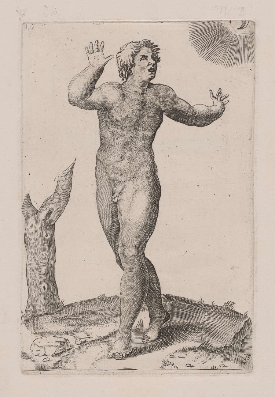 Nude Man Frightened By the Sight of the Sun and Moon Simultaneously