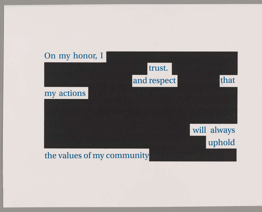 Inscription: on verso in bottom left: 1/3, bottom center: in pencil "Oath of Honor", bottom right: (Kamari Carter signature)