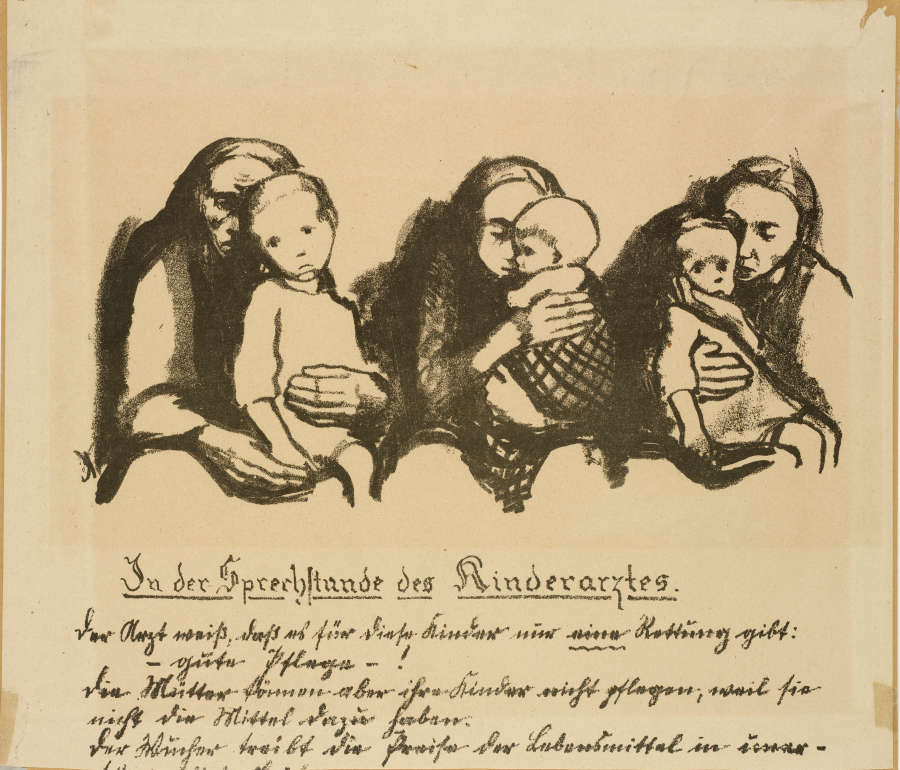 In the Officehours of the Children's Doctor; second from the series "Drei Fluglbatter gegen den Wucher", 1920