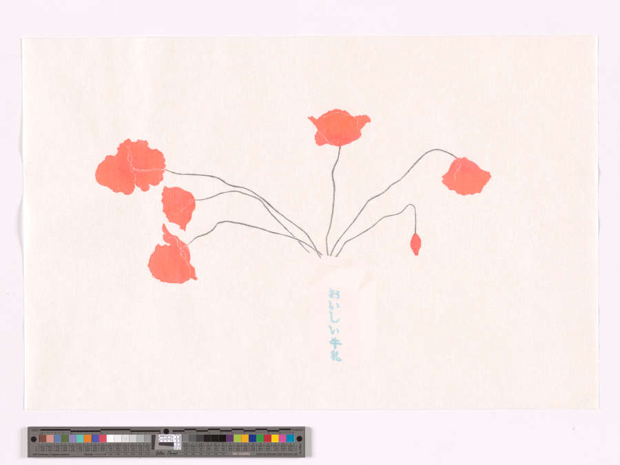 Characters printed on carton. Inscribed on graphite on verso, at lower margin: 8/8 Oishii Yoonmi Nam.