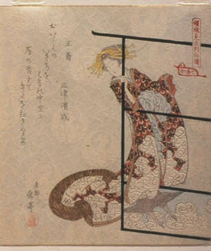 Inscription Text/Poem: おいらんの いきちをはるの 中空に 雁の沓まて きたをむきめり