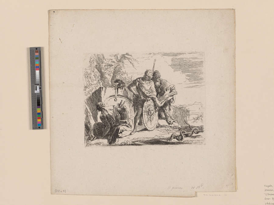 The images on this website can enable discovery and collaboration and support new scholarship, and we encourage their use. This object is in Copyright. This object is An Old Man Reading the Horoscope to a Young Soldier with the accession number of 46.523.10. To request new photography, please send an email to imagerequest@risd.edu and include your name and the object's accession number.