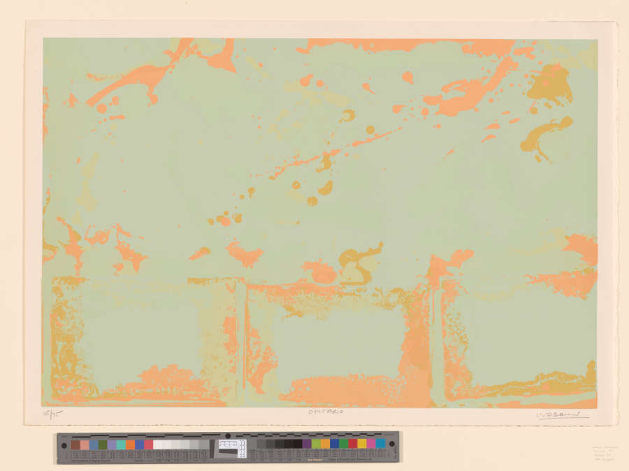 Original--Recto:numbered in pencil under image on left:65/75; titled in center:ONTARIO; signed on right:WD Bannard