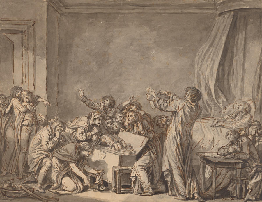 The images on this website can enable discovery and collaboration and support new scholarship, and we encourage their use. This object is in Copyright. This object is The Opening of the Will with the accession number of 38.166. To request new photography, please send an email to imagerequest@risd.edu and include your name and the object's accession number.