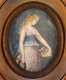 Oval Portrait Miniature of Woman with Basket of Flowers