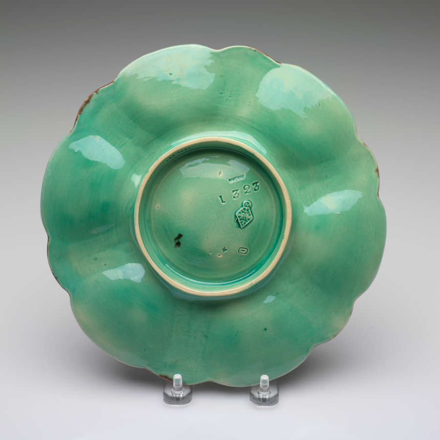 Marks: Impressed on underside: "MINTON" "1323" "N" and raised diamond-mark patent registration: ceramics class, year = 1867, day = 20, month = March, parcel # = 4.