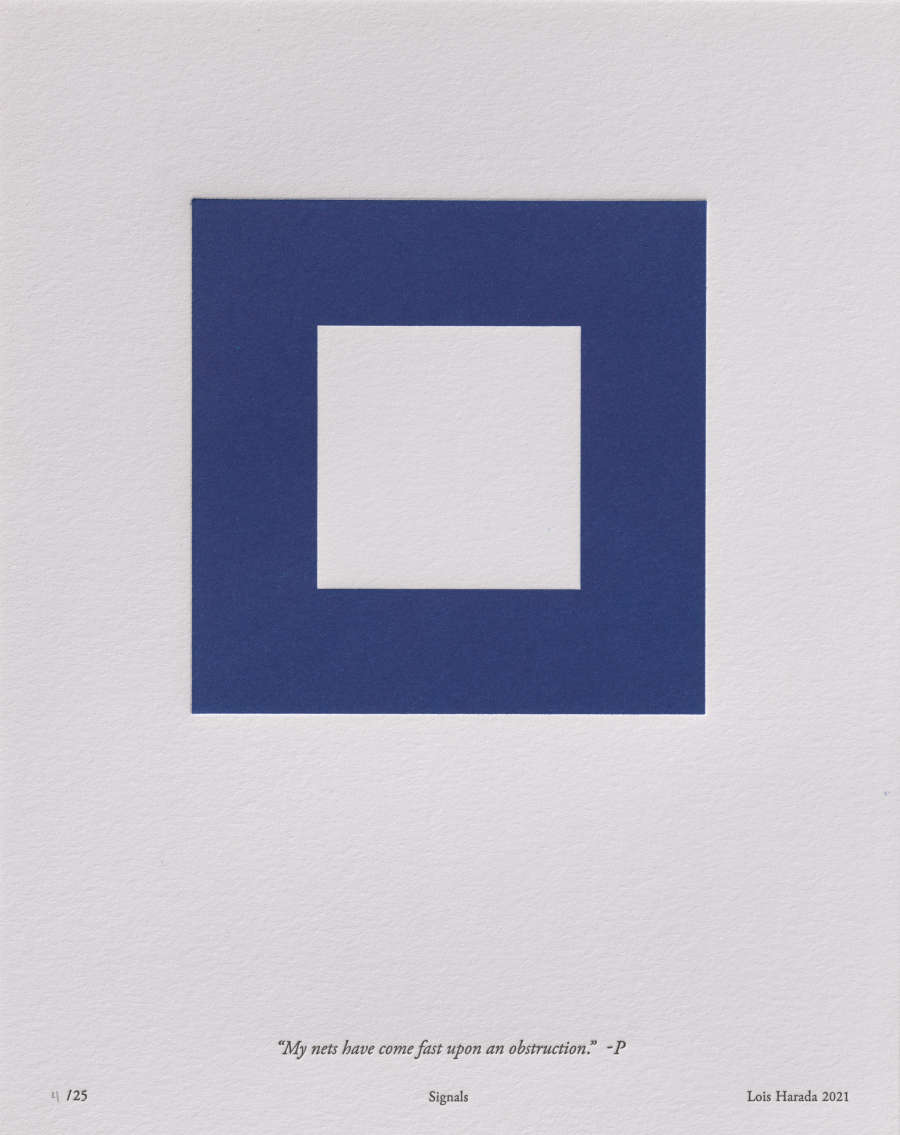 On recto, “4” inscribed in graphite LL within line printed in black ink at bottom that reads “/25 Signals Lois Harada 2021”