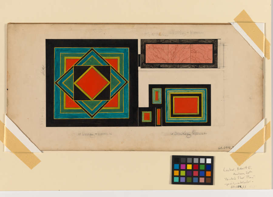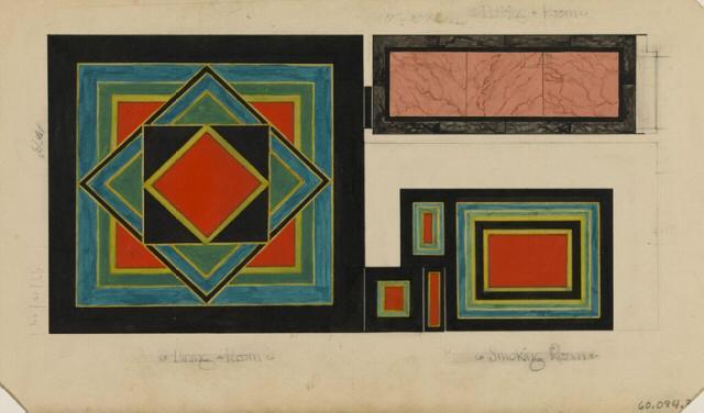 room labels written in pencil around perimeter of painted area- Dining Room, Smoking Room, Retiring Room.