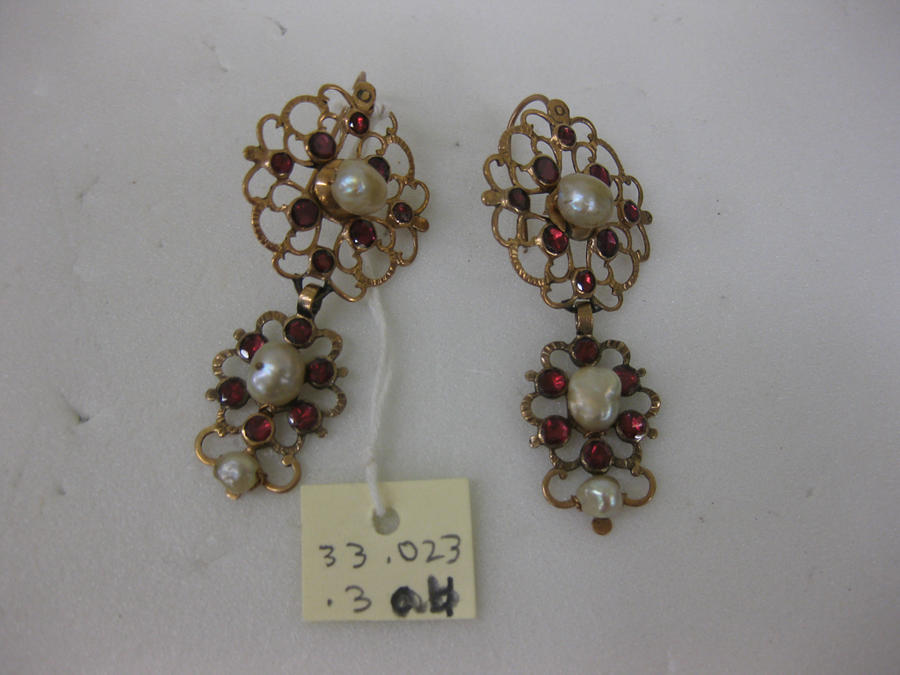 The images on this website can enable discovery and collaboration and support new scholarship, and we encourage their use. This object is in Copyright. This object is Pair of Earrings with the accession number of 33.023.3ab. To request new photography, please send an email to imagerequest@risd.edu and include your name and the object's accession number.