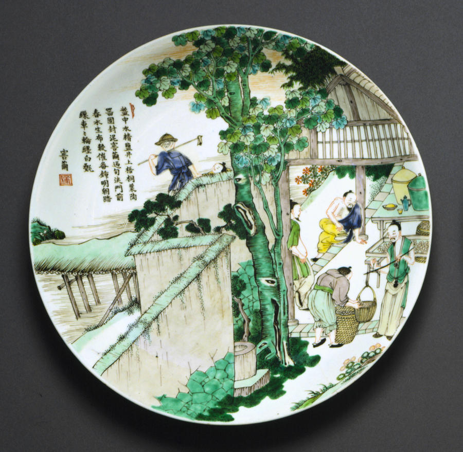 Pair of Plates with Scenes from the Gengzhitu, 1662-1722