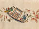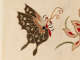 Silk satin weave with silk, wrapped-metallic, and kingfisher-feather embroidery